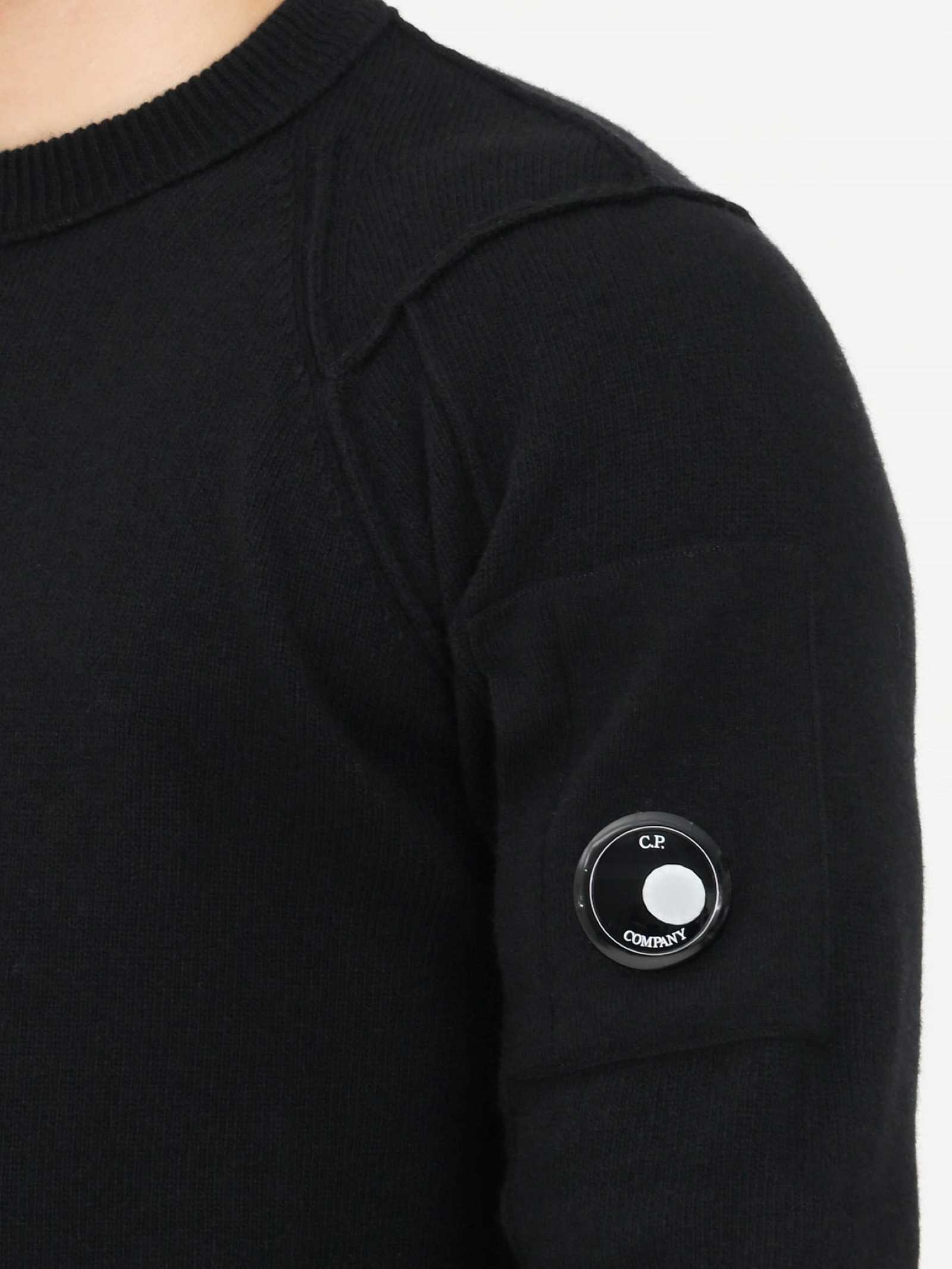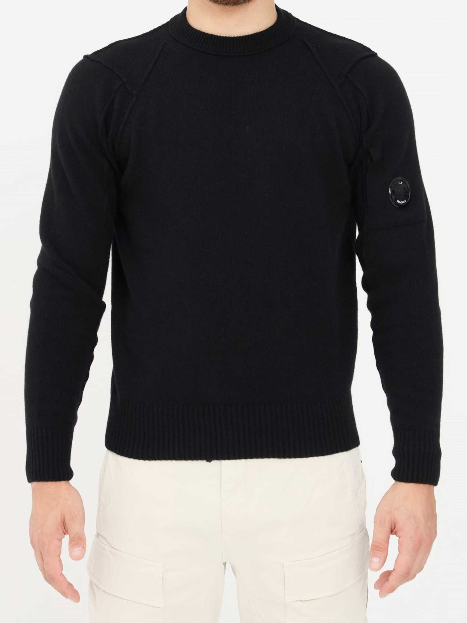 Classico maglione girocollo con lavorazione a costine su colletto, orlo e polsini, caratterizzato dallo scomparto sulla manica rifinito dallesclusiva lente C.P. Company. È realizzato con la nostra lana dagnello di prima qualità che offre morbidezza e un effetto isolante, risultando al tempo stesso molto leggera.