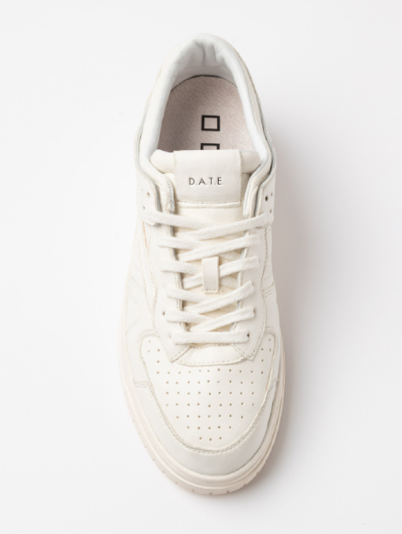 Sneakers D.A.T.E. da uomo in nappa traforata per massima traspirabilità, realizzate con materiali Made in Italy. Design distintivo con logo laterale, linguetta logata e scritta modello sul retro. Fodera in pelle e spugna di cotone, suola in gomma cucita 2,53,5 cm con logo in rilievo. Soletta interna rialzata 2,5 cm per comfort. Vestibilità regular.