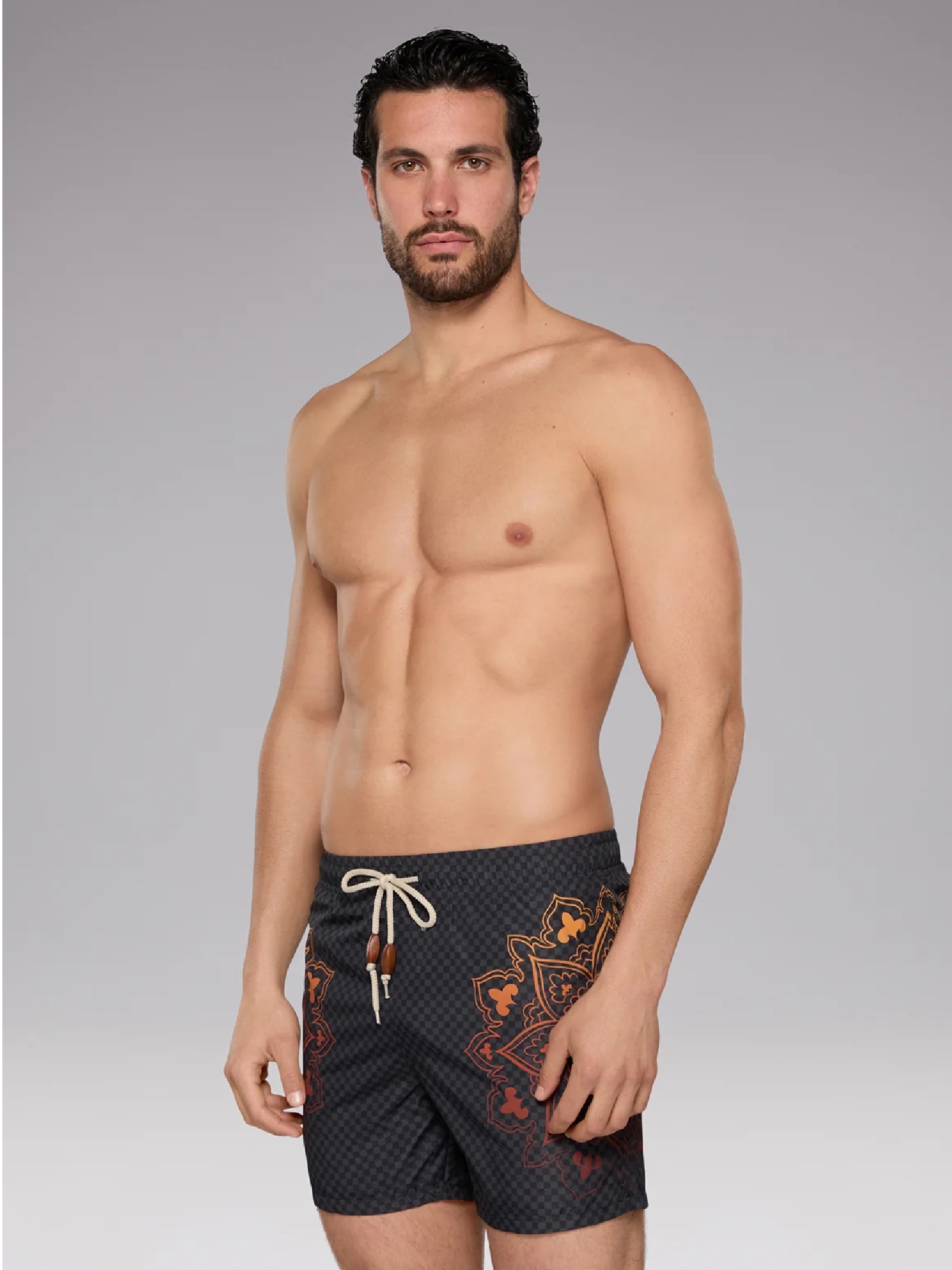 Short in tessuto microfibra a fantasia, con tasche laterali e taschino posteriore con chiusura in velcro.