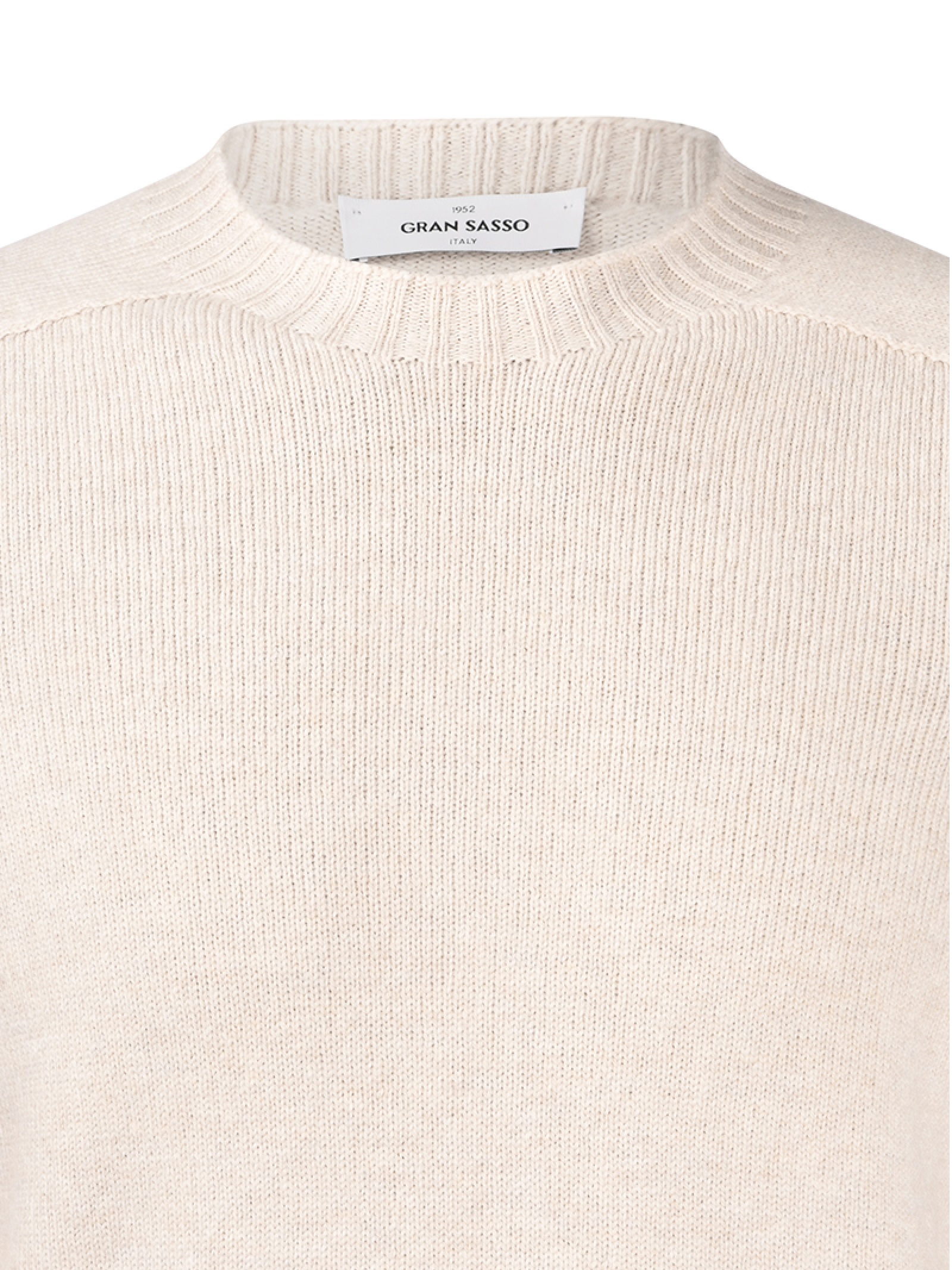 Maglia girocollo Gran Sasso in lana Super Geelong, raffinata e versatile, con maniche a martello. Un classico del guardaroba maschile, perfetta da indossare a vista o sotto un capospalla durante le giornate più fredde. Design elegante e comfort superiore, ideale per outfit casual-chic o look più sofisticati. Fashion fit, realizzata in Italia con lana di alta qualità, simbolo di stile e durata nel tempo.
