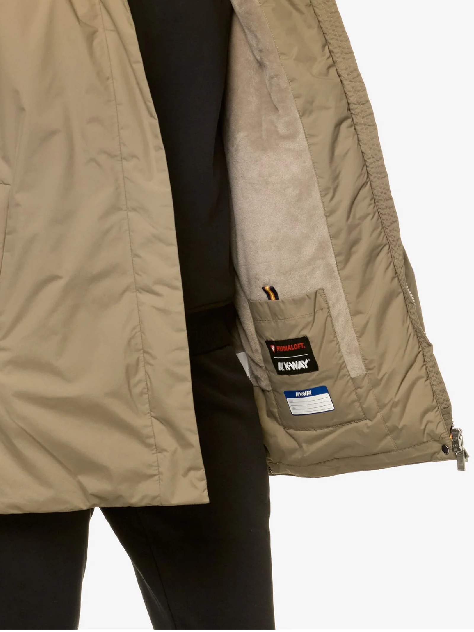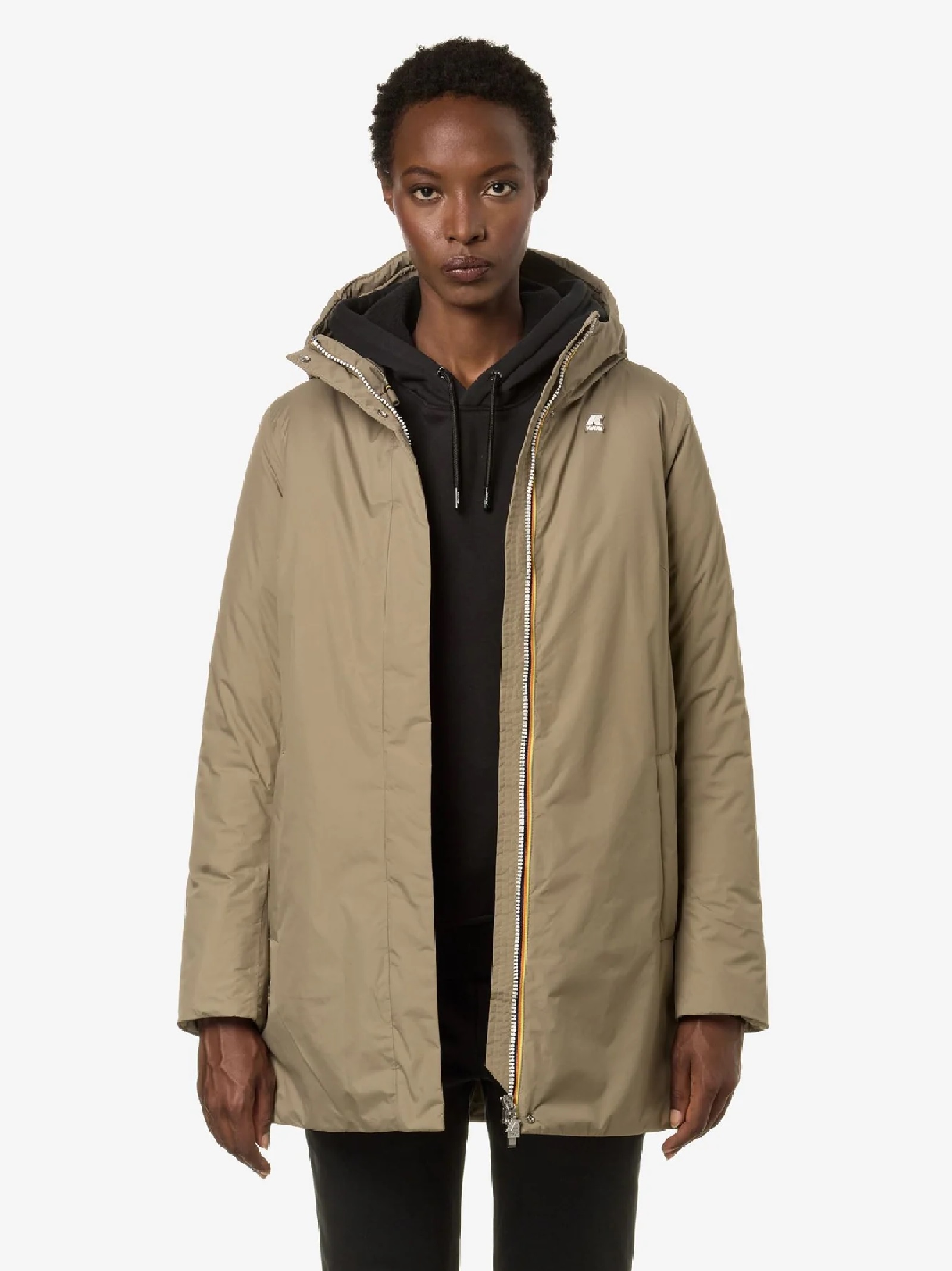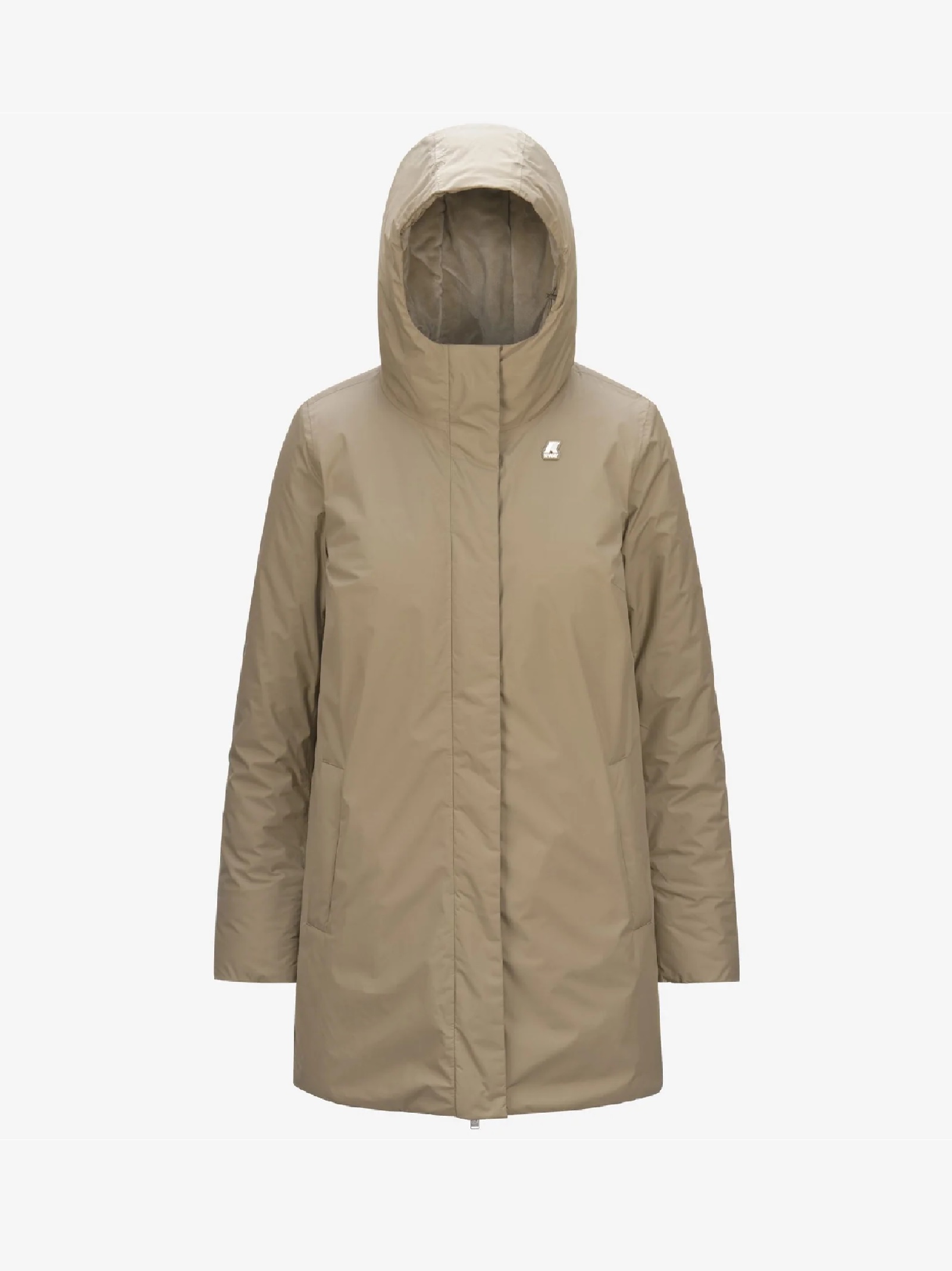 Sophie è una giacca da donna di media lunghezza perfetta per la mezza stagione. Realizzata in nylon micro ripstop impermeabile, idrorepellente e antivento, offre una protezione affidabile contro le intemperie. L'imbottitura leggera fornisce un grado di calore medio, mantenendoti al caldo senza eccessiva pesantezza. La fodera in tessuto soffice è piacevole sulla pelle. La giacca è dotata di cuciture termonastrate per una maggiore durata. Il cappuccio, non staccabile, è regolabile con corda elastica e fermacorda. La chiusura con zip è nascosta sotto una patta, i polsini hanno elastico e ci sono due tasche con zip per riporre oggetti essenziali.