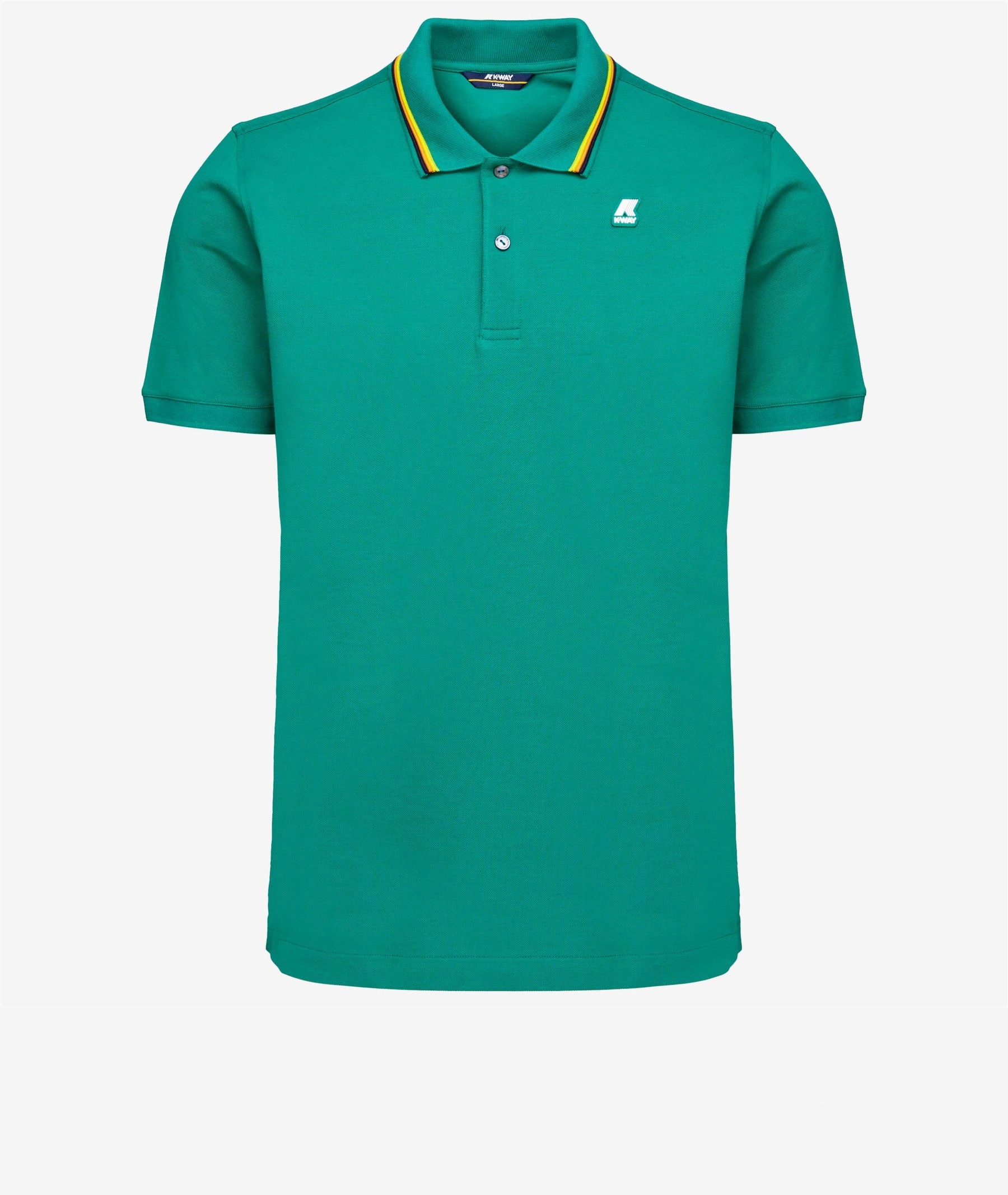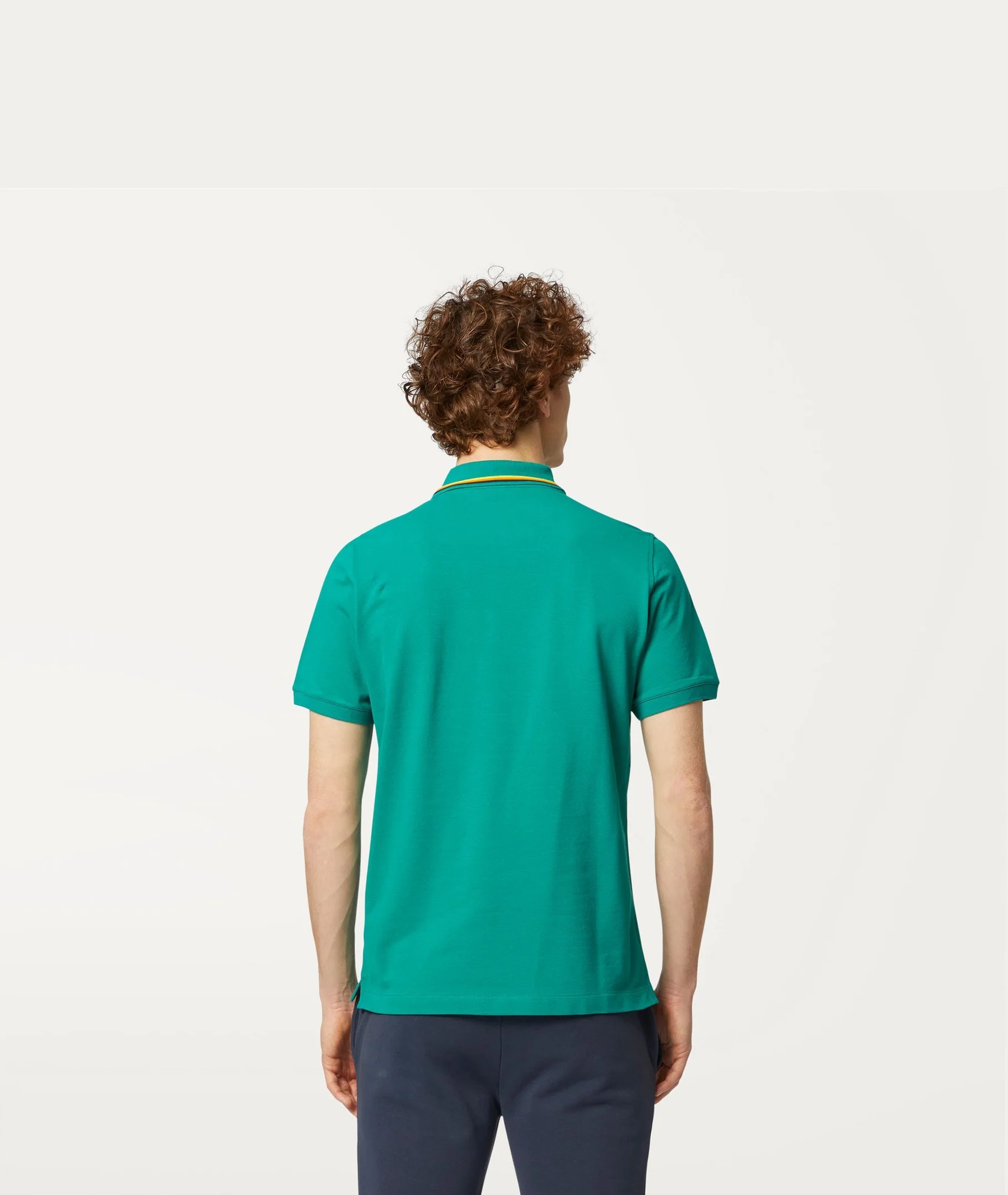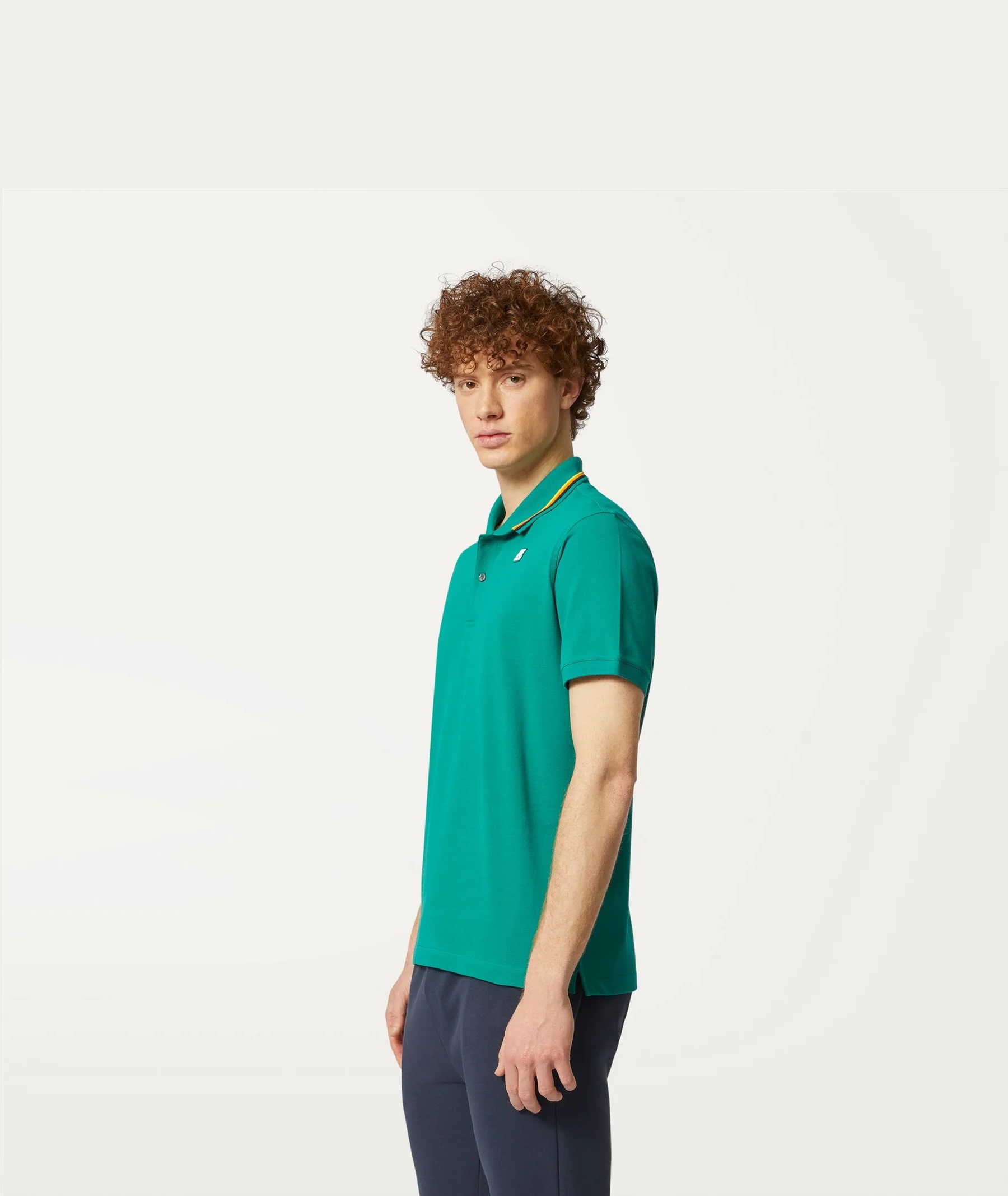 Jude è la polo da uomo in piquet di cotone stretch morbido e flessibile. Bordo del colletto con profilo a righe e spacchetti sui lati.