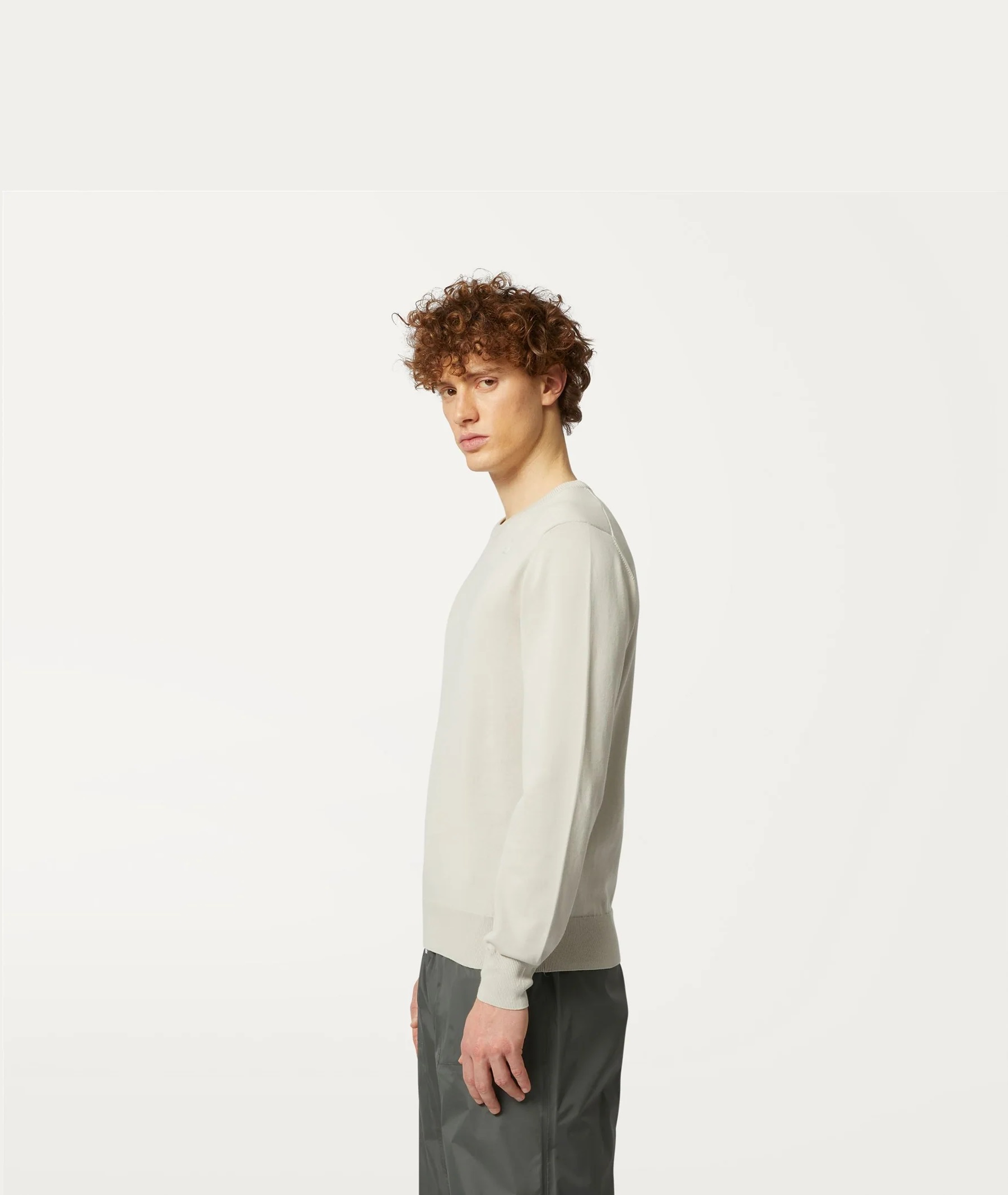 Sebastien è il maglione girocollo realizzato in puro cotone zero pilling lavorato in maglia rasata. I bordi sono rifiniti a costina.