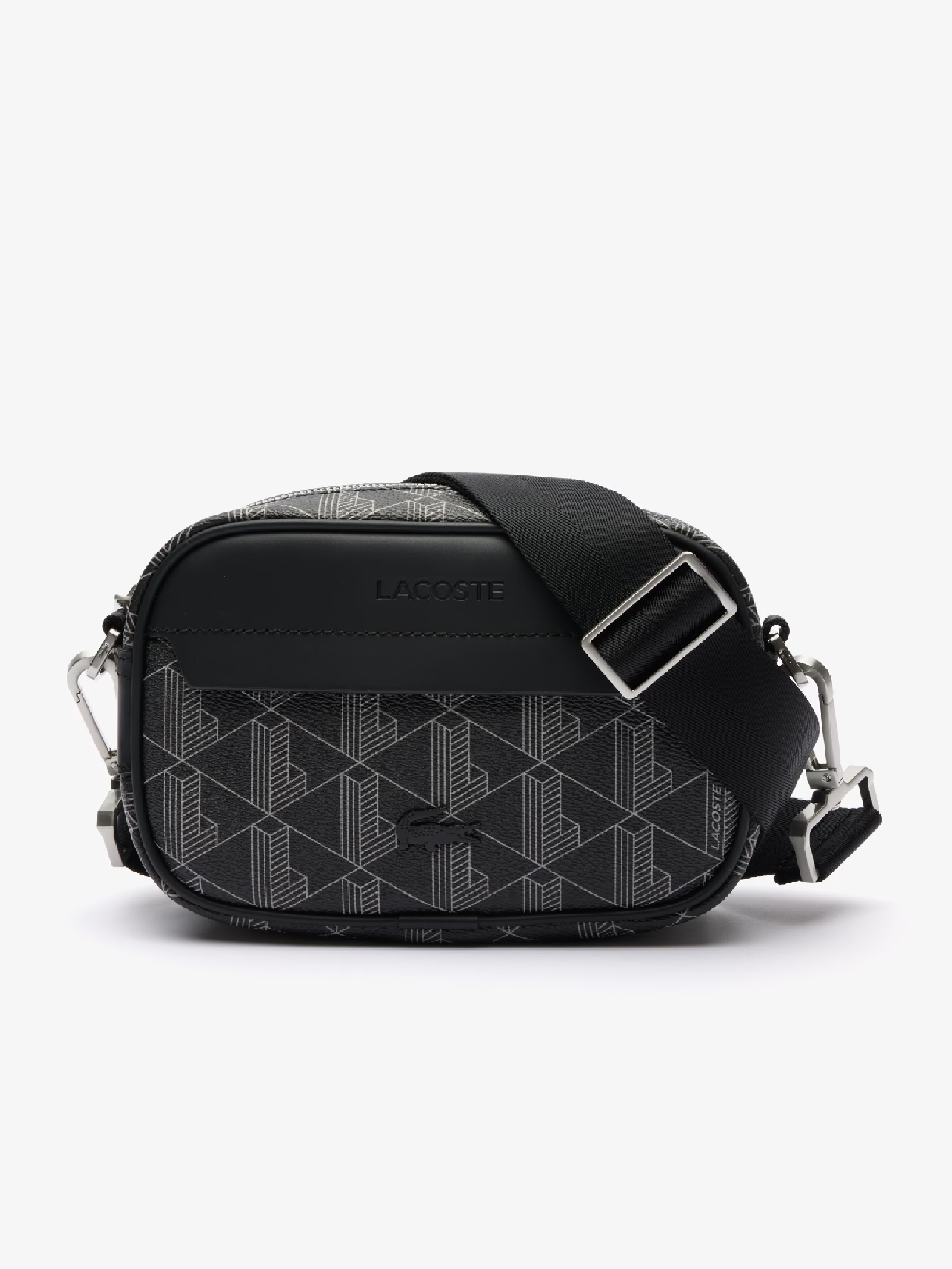 Borsa a tracolla Lacoste con nuovo monogramma, ideale per completare look urban con stile elegante e contemporaneo. Realizzata in PVC effetto martellato, presenta chiusura con zip, tracolla regolabile e rimovibile con gancetti in metallo e pratica tasca interna piatta. Compatta e funzionale (19 x 12 x 8 cm), è impreziosita dalliconico coccodrillo tono su tono.