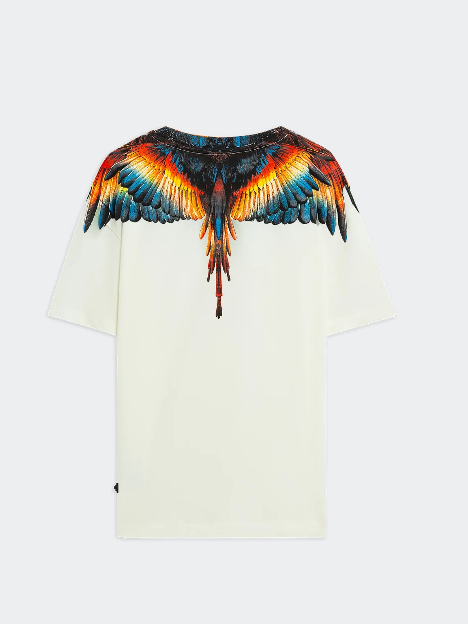 T-shirt Marcelo Burlon County of Milan in cotone 100% dal fit regolare. Presenta iconica stampa multicolore Ali COUNTY OF MILAN su fronte e retro ed etichetta con logo laterale. Un capo distintivo dallo stile urbano e contemporaneo, perfetto per valorizzare ogni outfit casual con il design riconoscibile del brand milanese.