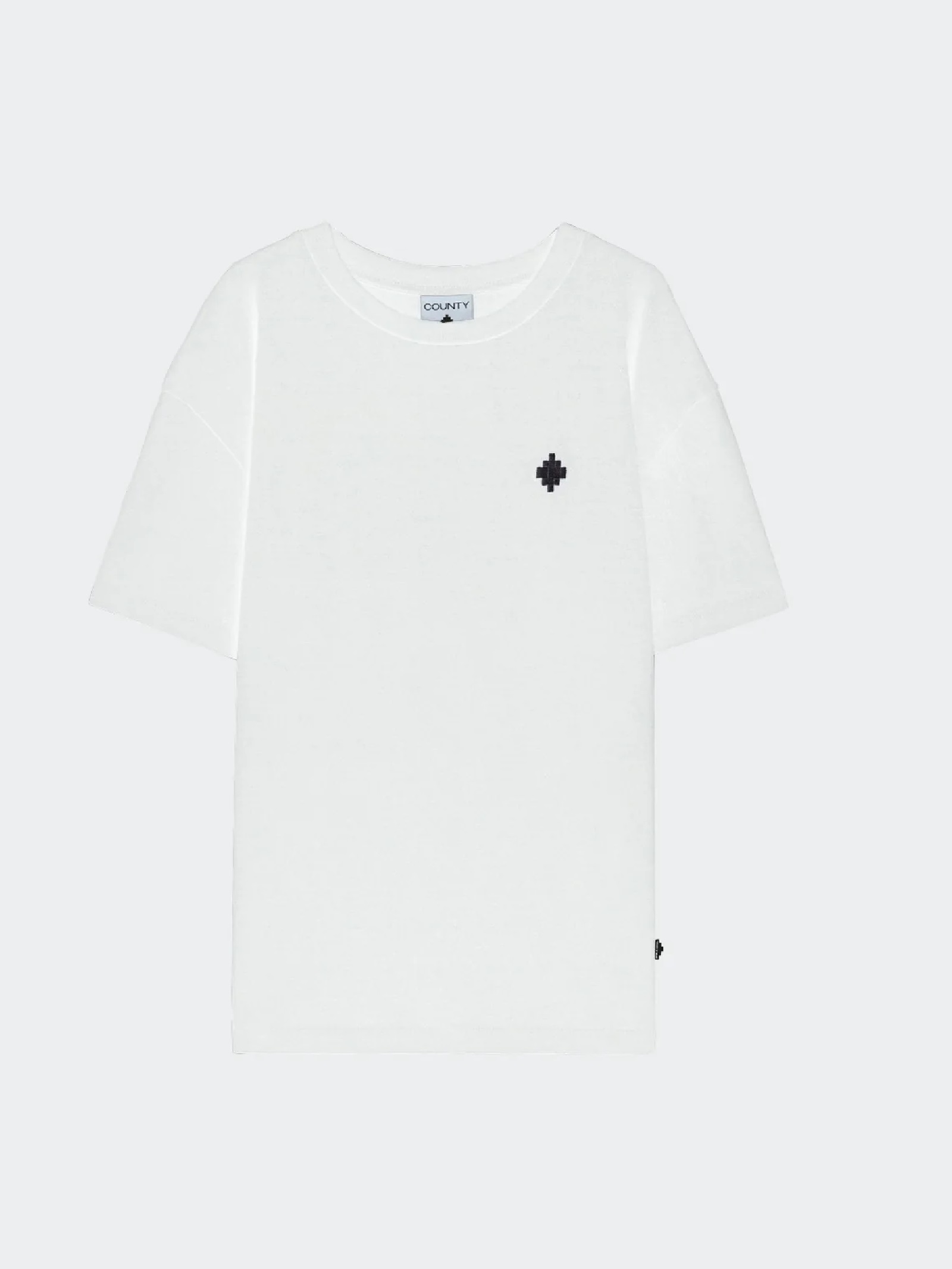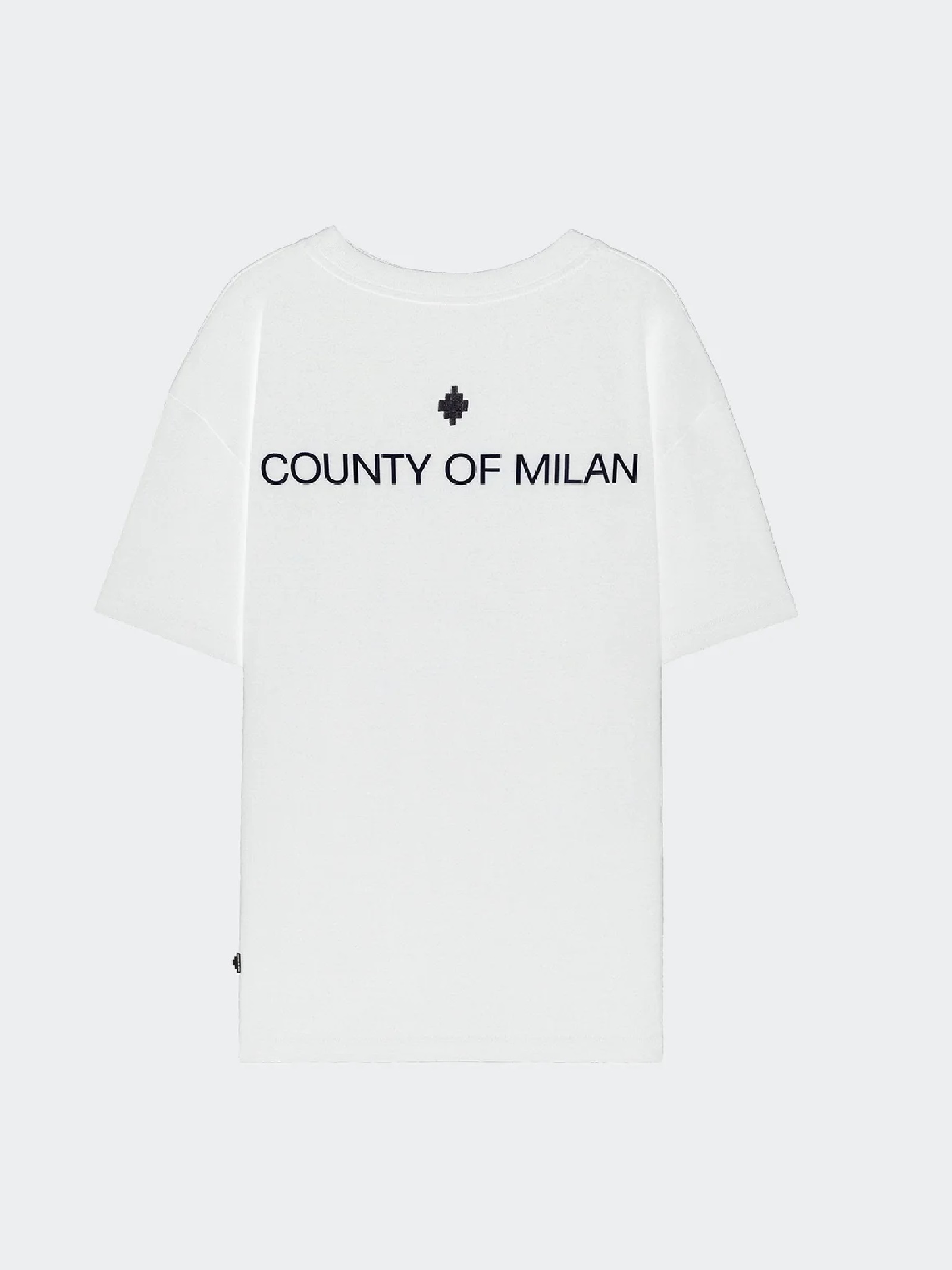 T-shirt Marcelo Burlon County of Milan in cotone 100% tinta unita. Presenta logo ricamato sul petto e stampa COUNTY OF MILAN sul retro. Dal design minimal e moderno, offre vestibilità regolare, maniche corte e girocollo a costine. Perfetta per un look casual e distintivo, rappresenta lo stile urbano iconico del brand milanese.