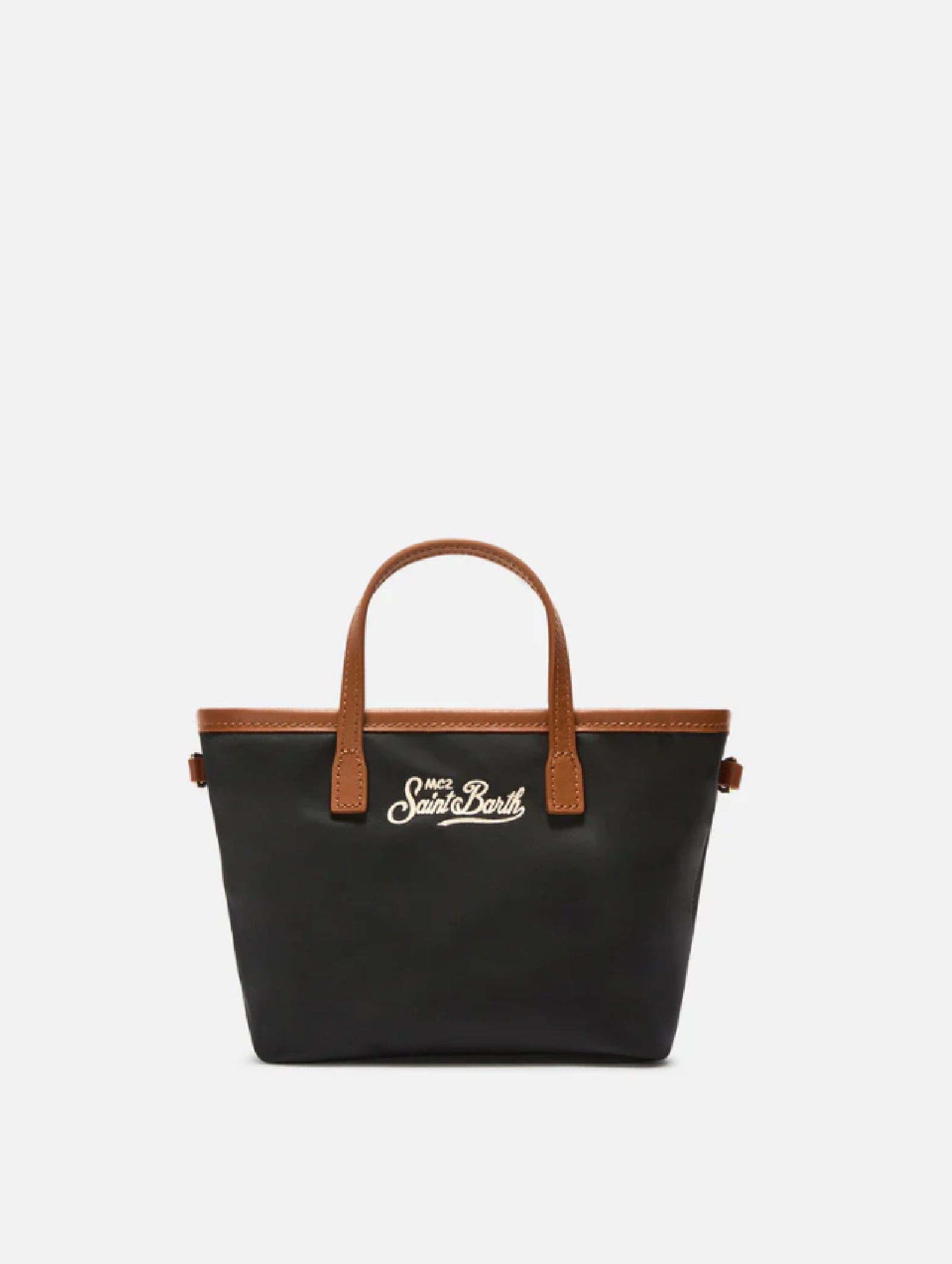 Borsa City Mini SAINT BARTH in nylon nero leggero e resistente, ideale per luso quotidiano. Design compatto e funzionale con struttura morbida e logo ricamato frontale. Dotata di doppi manici, tracolla regolabile e removibile e tasca interna. Chiusura con zip superiore per maggiore praticità. Perfetta per uno stile versatile e contemporaneo.