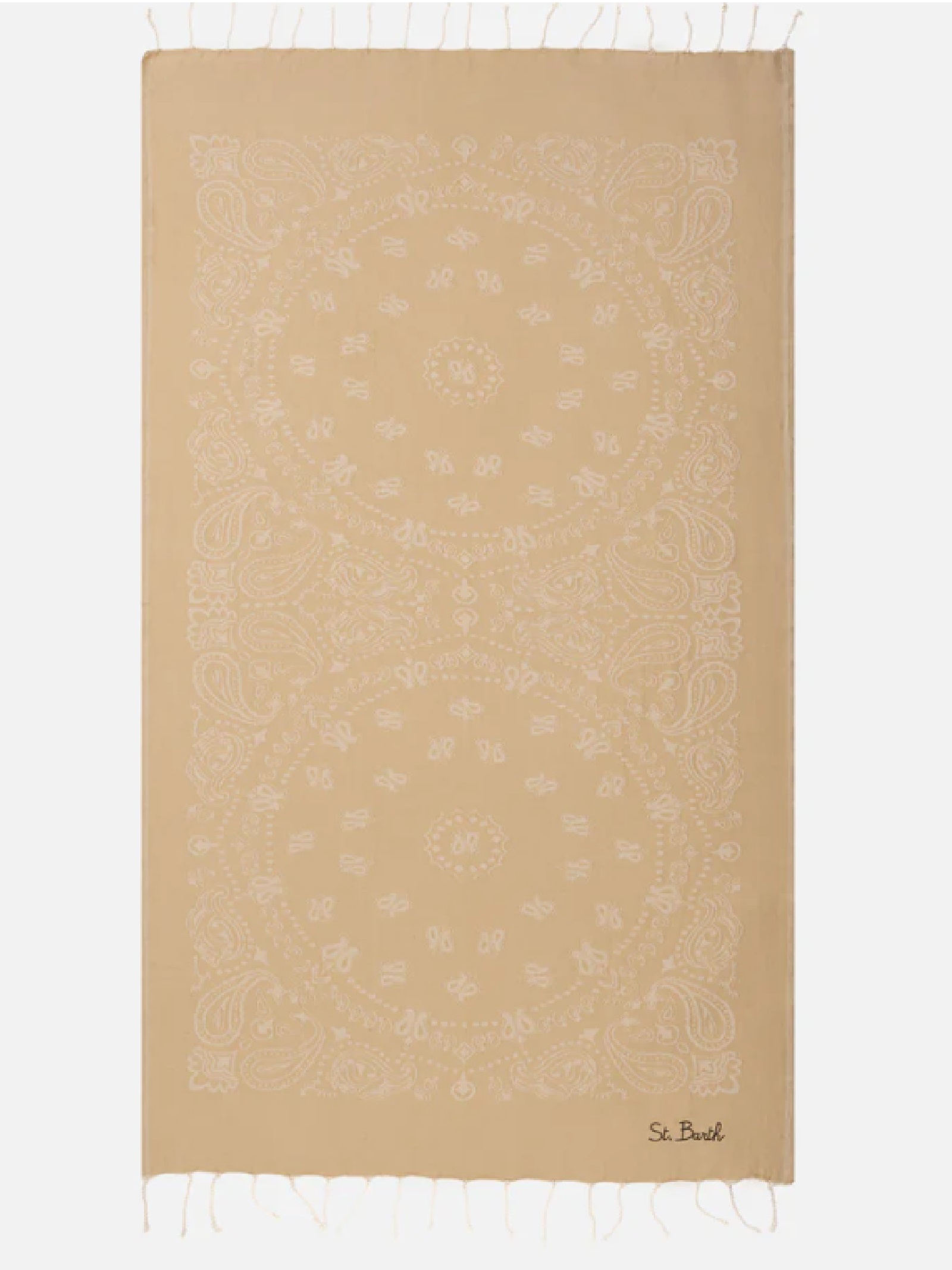 Scopri le nostre foutas in pregiato cotone jacquard: l'accessorio lussuoso ed elegante pensato per le tue giornate al mare. Realizzate in morbido cotone assorbente e decorate con intricati motivi jacquard, queste foutas aggiungono un tocco di classe senza tempo alla tua esperienza in spiaggia. Rifinite con eleganti orli sfrangiati e impreziosite dallesclusivo logo St. Barth ricamato, combinano stile e funzionalità.