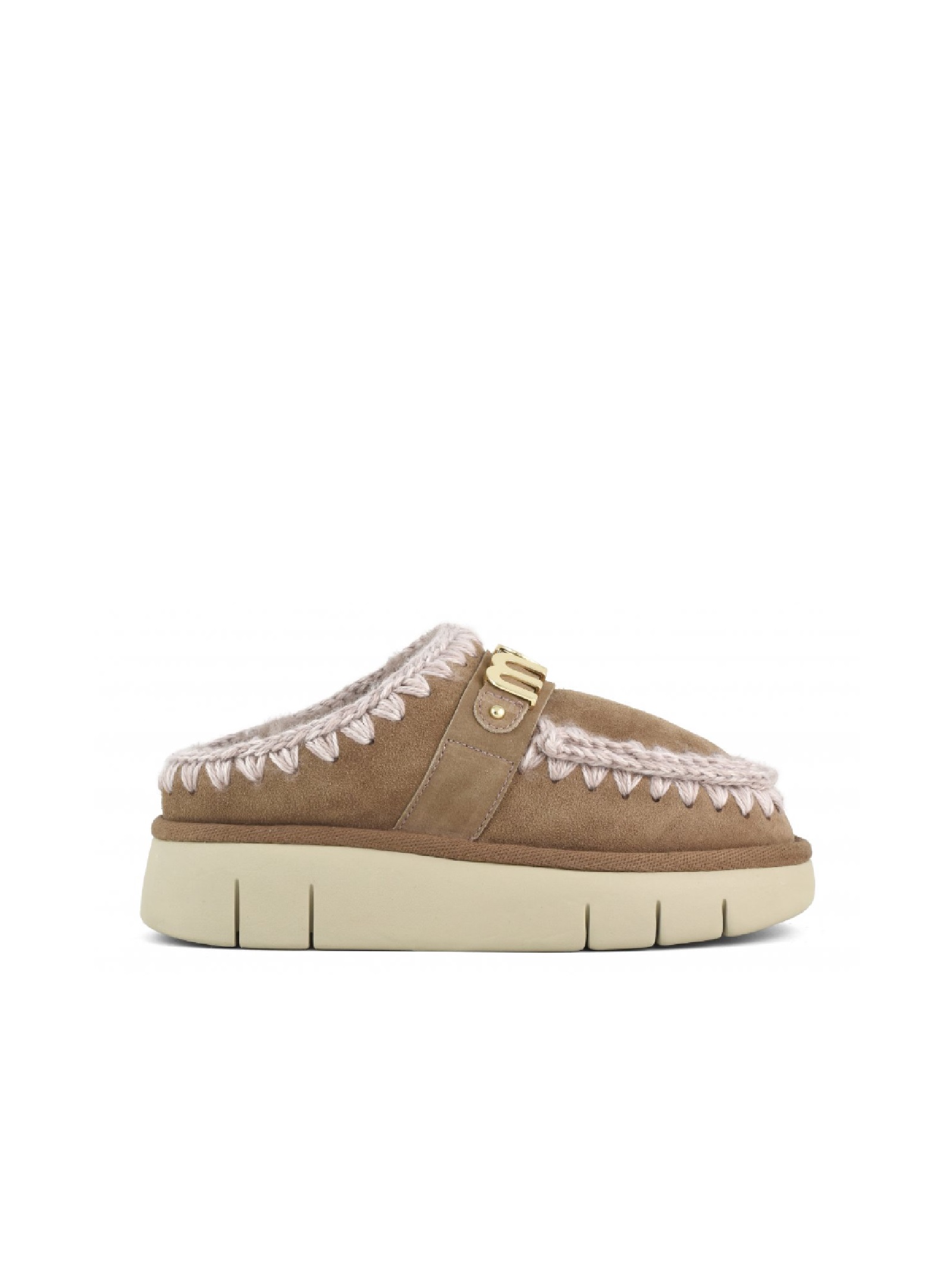 Un'interpretazione sofisticata del classico clog, il bounce clog con logo metallizzato combina artigianalità e comfort senza pari.Realizzato a mano in vera pelle di montone double-face per un look raffinato e una calzata calda e confortevole.
