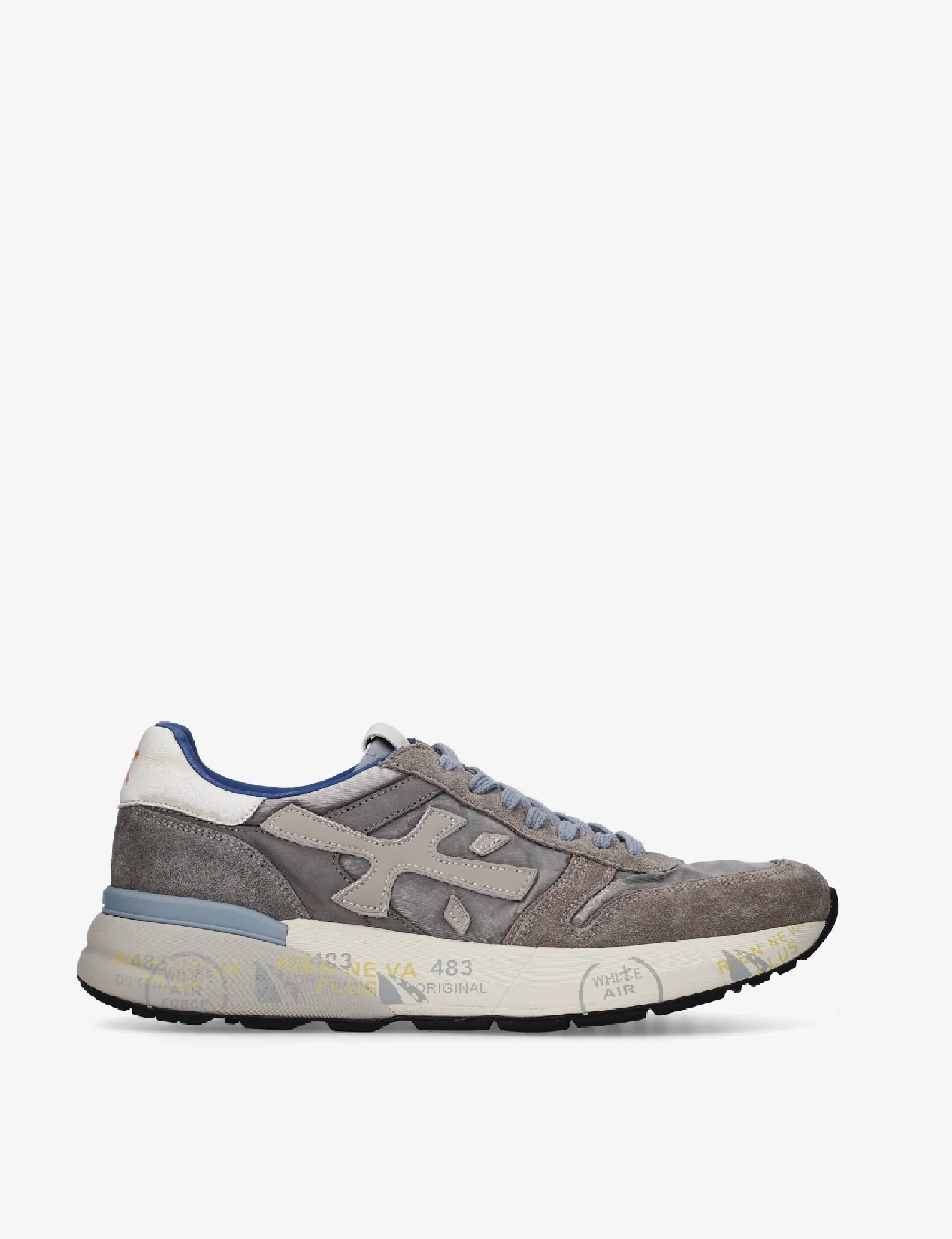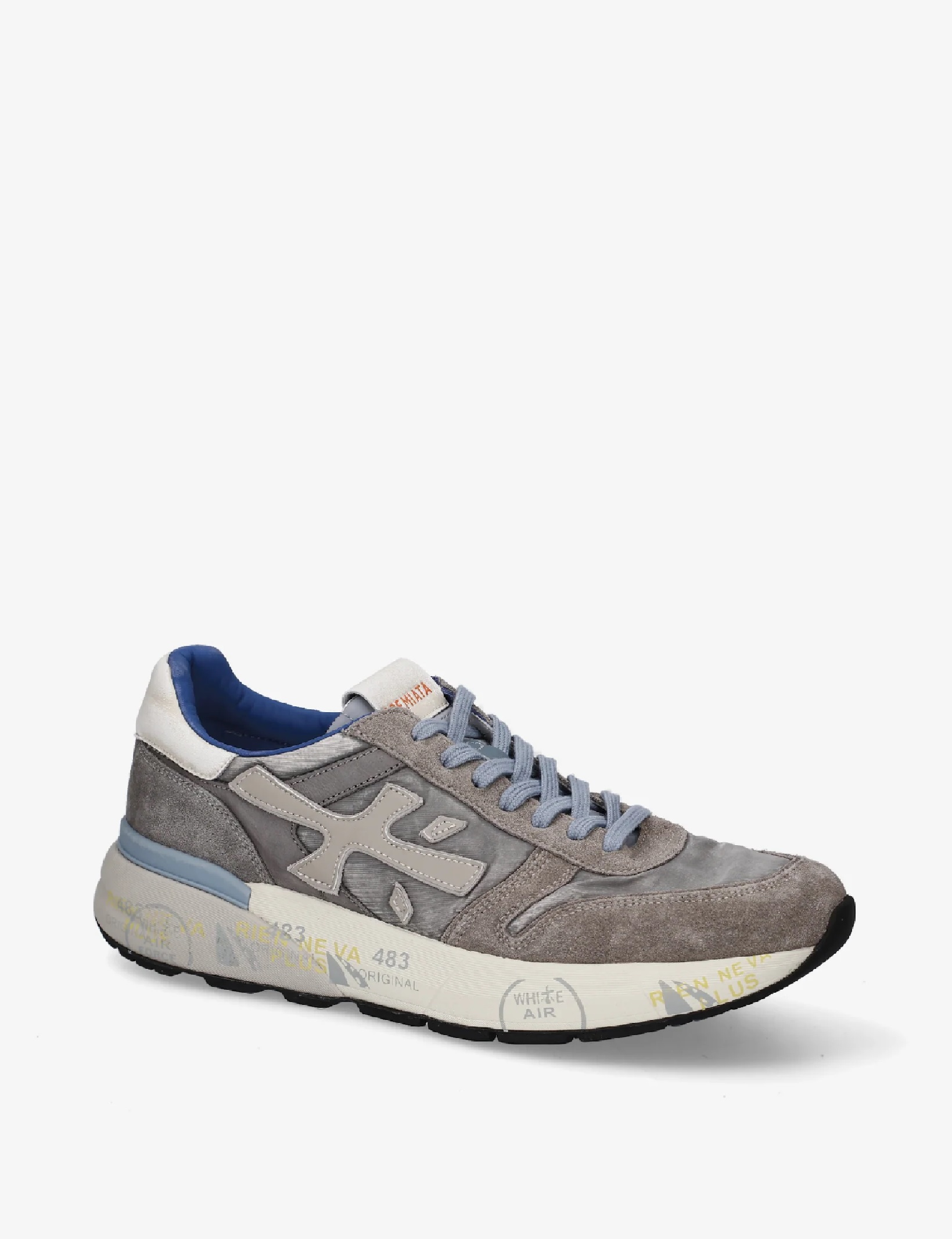 Sneaker Premiata da uomo in mix di pellami e materiali di alta qualità, declinata nelle tonalità del grigio per un look casual versatile. Silhouette iconica impreziosita dal logo distintivo del brand. Comfort e stile per luso quotidiano. Altezza suola 4,2 cm, fusbet interno 28,5 cm.