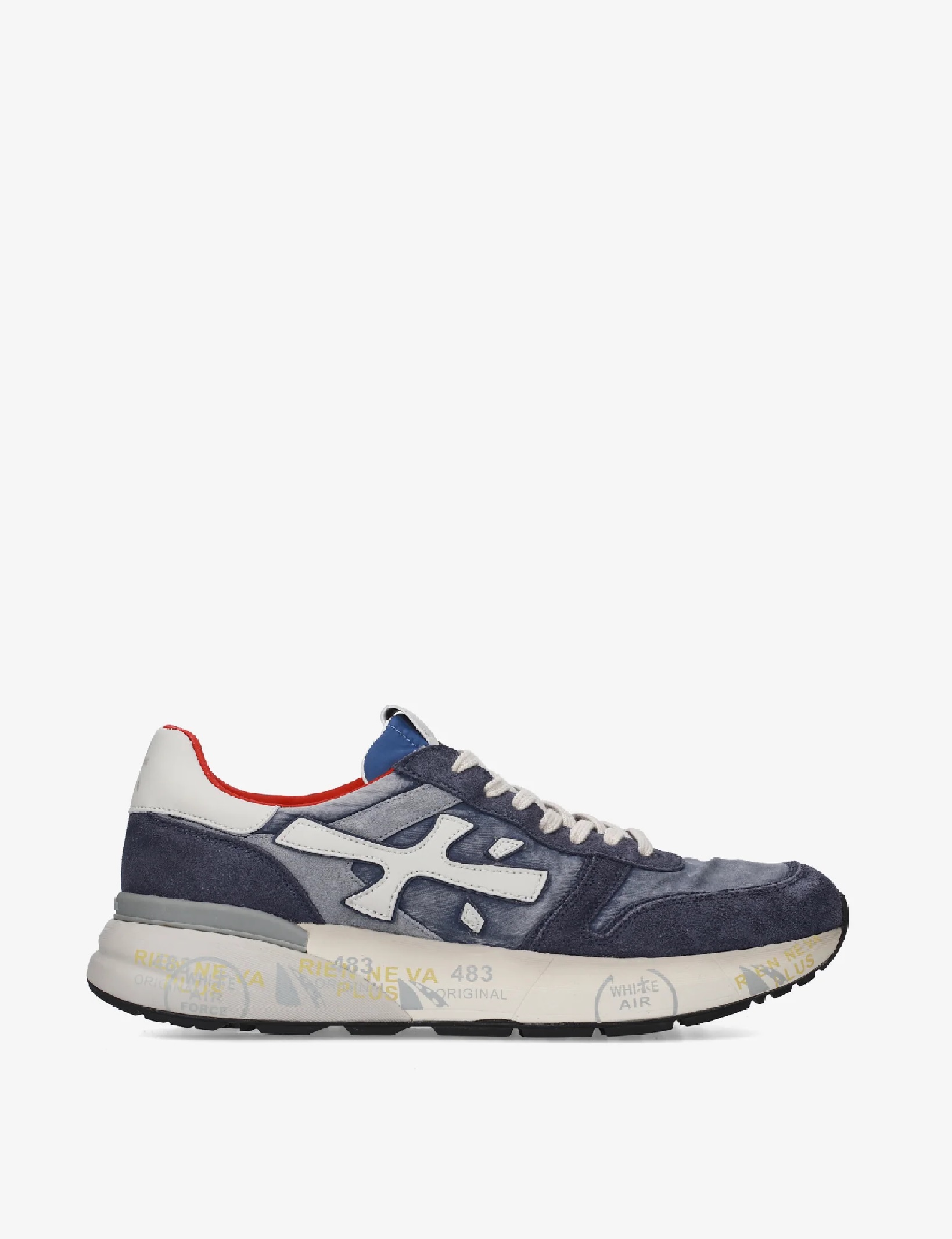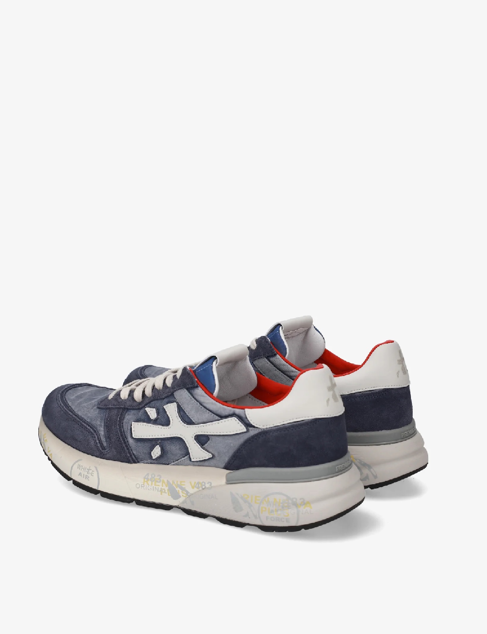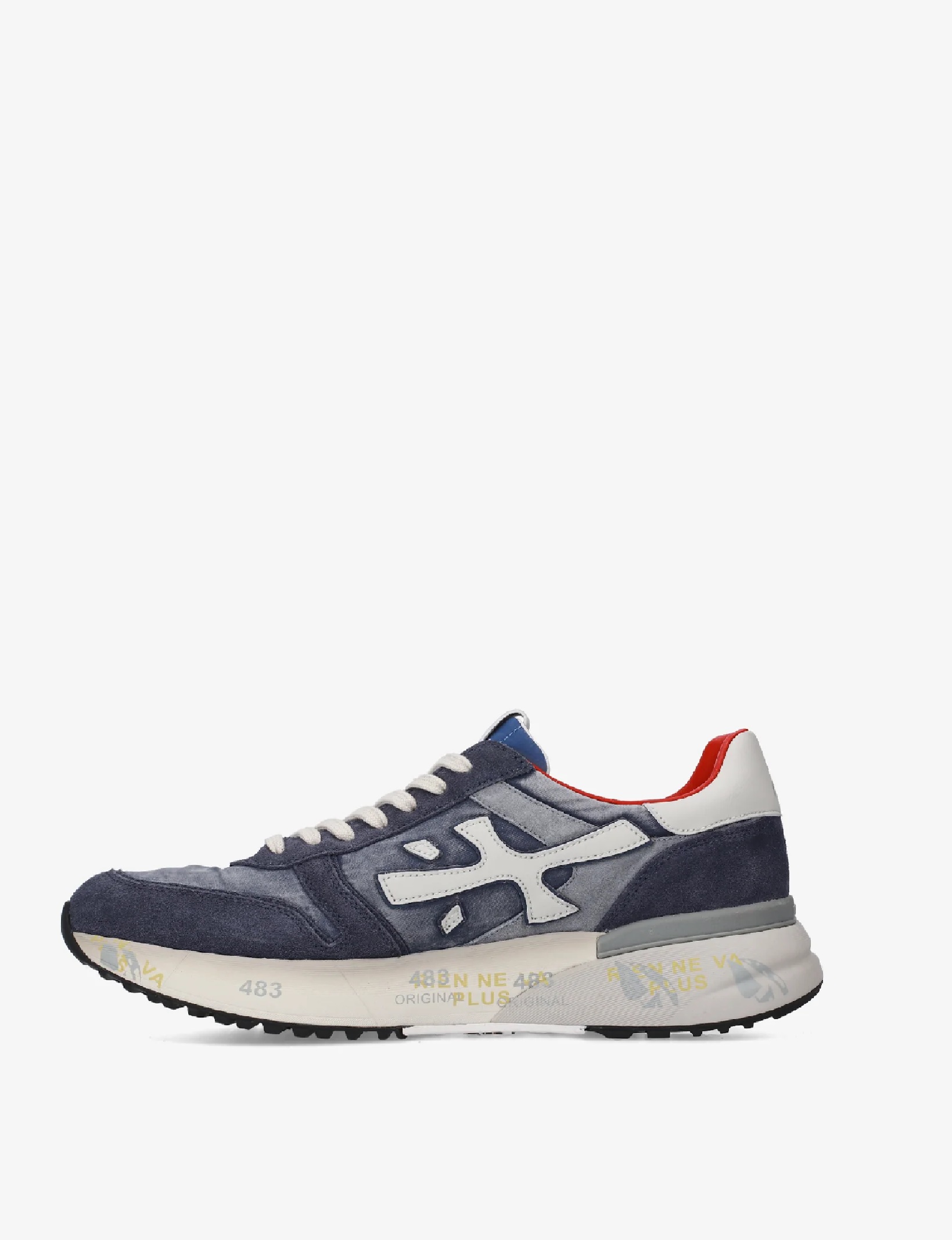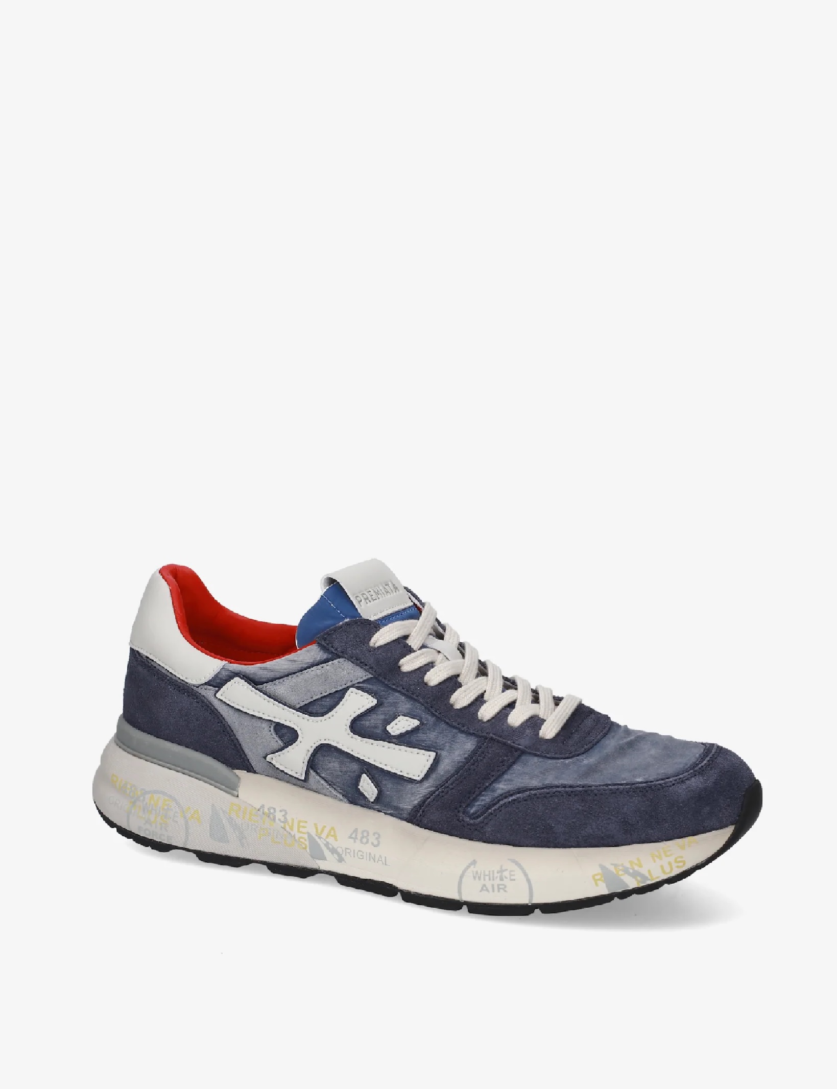 Sneaker Premiata da uomo in mix di pellami e materiali di alta qualità, proposta nella tonalità blu per un look casual moderno. Silhouette iconica arricchita dal logo distintivo, ideale per uno stile versatile e contemporaneo. Altezza suola 4,2 cm, fusbet interno 28,5 cm.