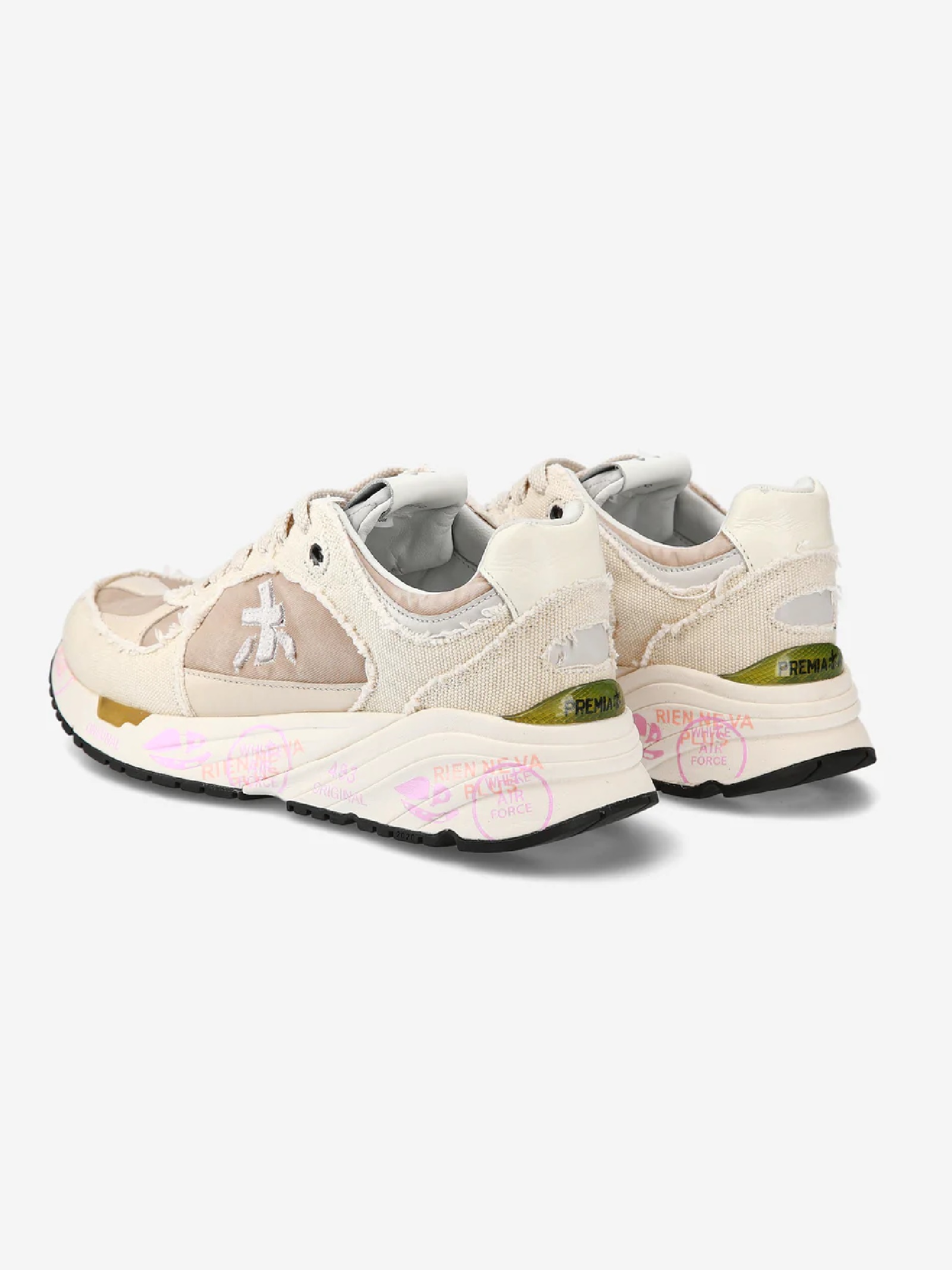 Le sneakers Mase sono un tributo agli anni '90, con una silhouette vintage e dettagli vibranti. Presentano il logo Premiata sui lati e la scritta "MASE" sull'etichetta. L'altezza della suola è di 4 cm e la lunghezza del sottopiede interno è di 25,7 cm per la taglia 37.