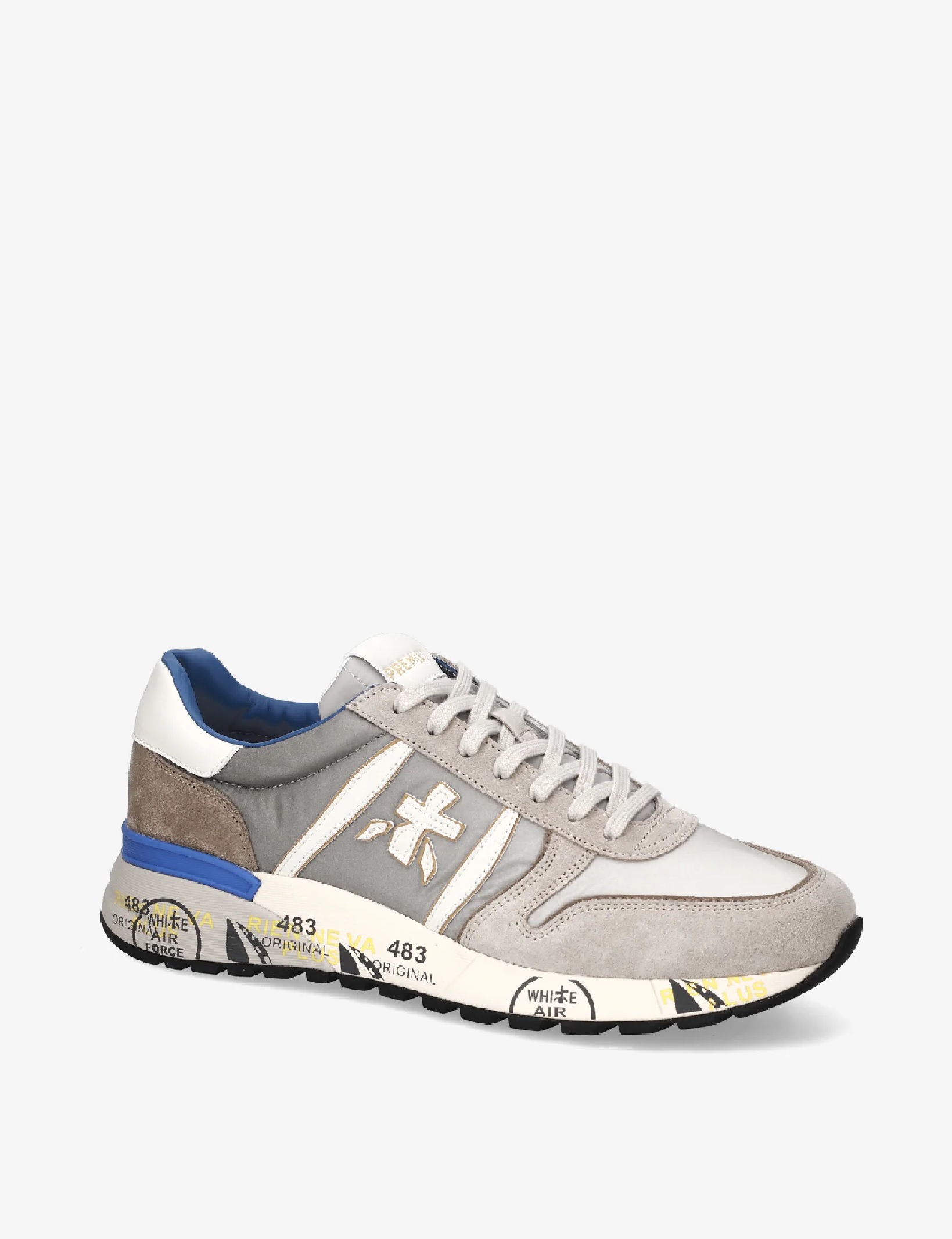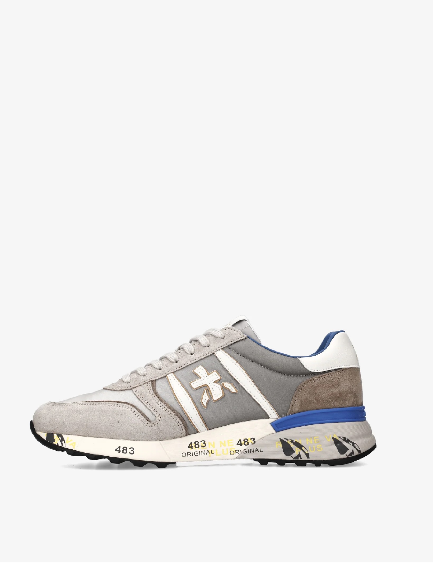 Sneakers Premiata modello Lander da uomo, realizzate in morbido pellame scamosciato e nylon per comfort e stile. Design iconico con logo distintivo, suola ergonomica e ultraleggera per una calzata dinamica. Perfette per un look casual contemporaneo. Altezza suola 4,2 cm, fusbet interno 28,5 cm.