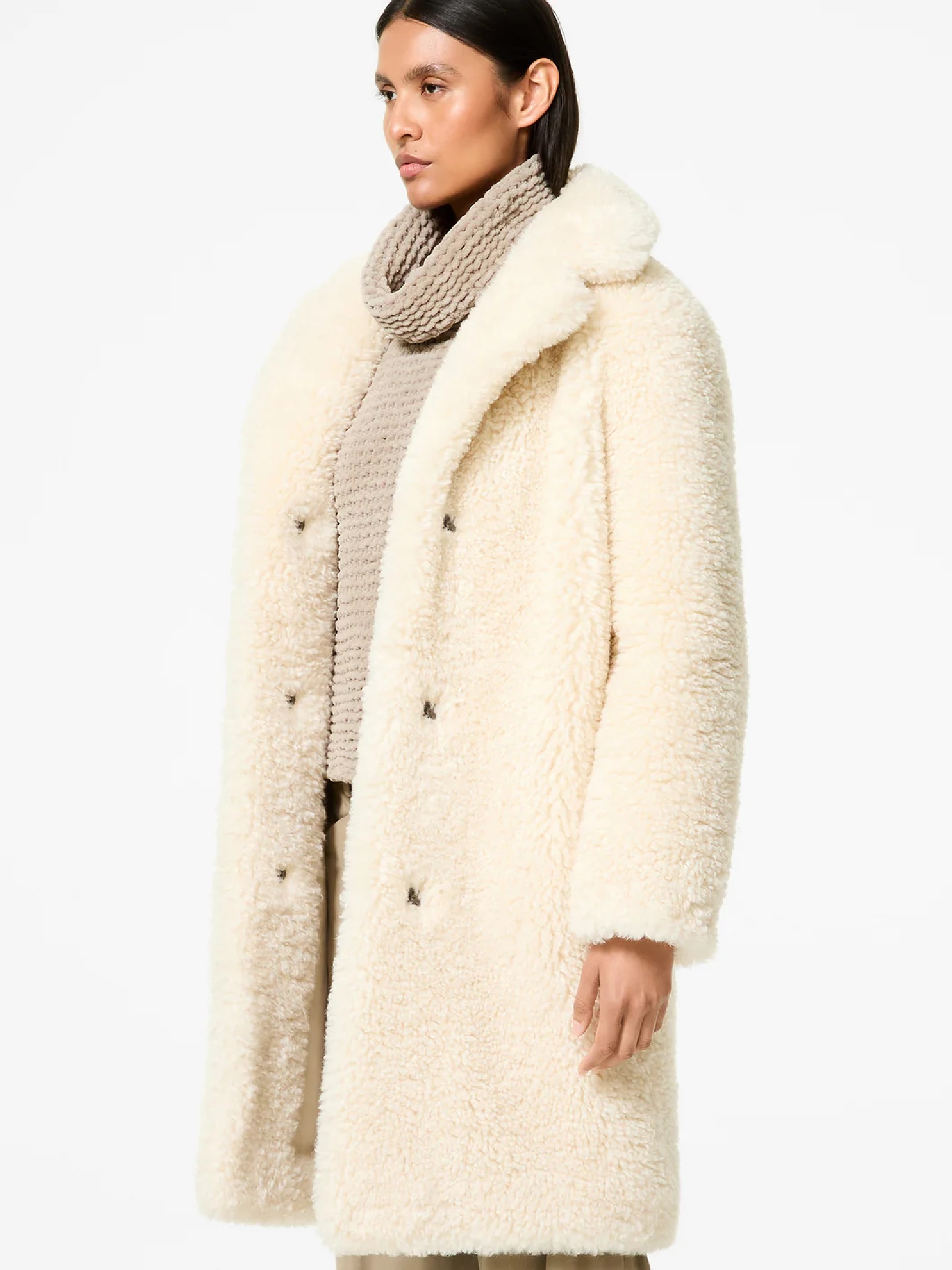Cappotto teddy RRD donna in eco pelliccia premium reversibile, dal design rétro anni 70 reinterpretato in chiave minimalista e contemporanea. La linea morbida e la lunghezza tre quarti avvolgono il corpo con calore e comfort. Abbottonatura nascosta, bordure in velluto a contrasto e logo RRD sulla manica completano il capo con stile. Perfetto per look rétro chic e outfit dimpatto con pantaloni in velluto.