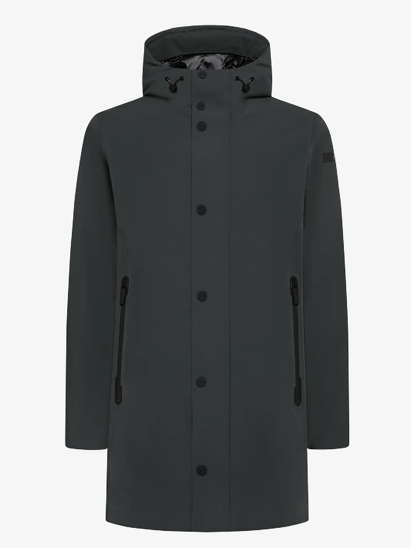 Eskimo RRD uomo dal design minimalista e contemporaneo, realizzato in tessuto Stratofabric#3 traspirante e impermeabile. Limbottitura in piuma danatra 90/10 e la costruzione termonastrata garantiscono calore e protezione. Dettagli come il cappuccio regolabile, le tasche termonastrate e la finitura opaca Montecristo rendono questo eskimo tecnico RRD un capo elegante e performante per ogni occasione