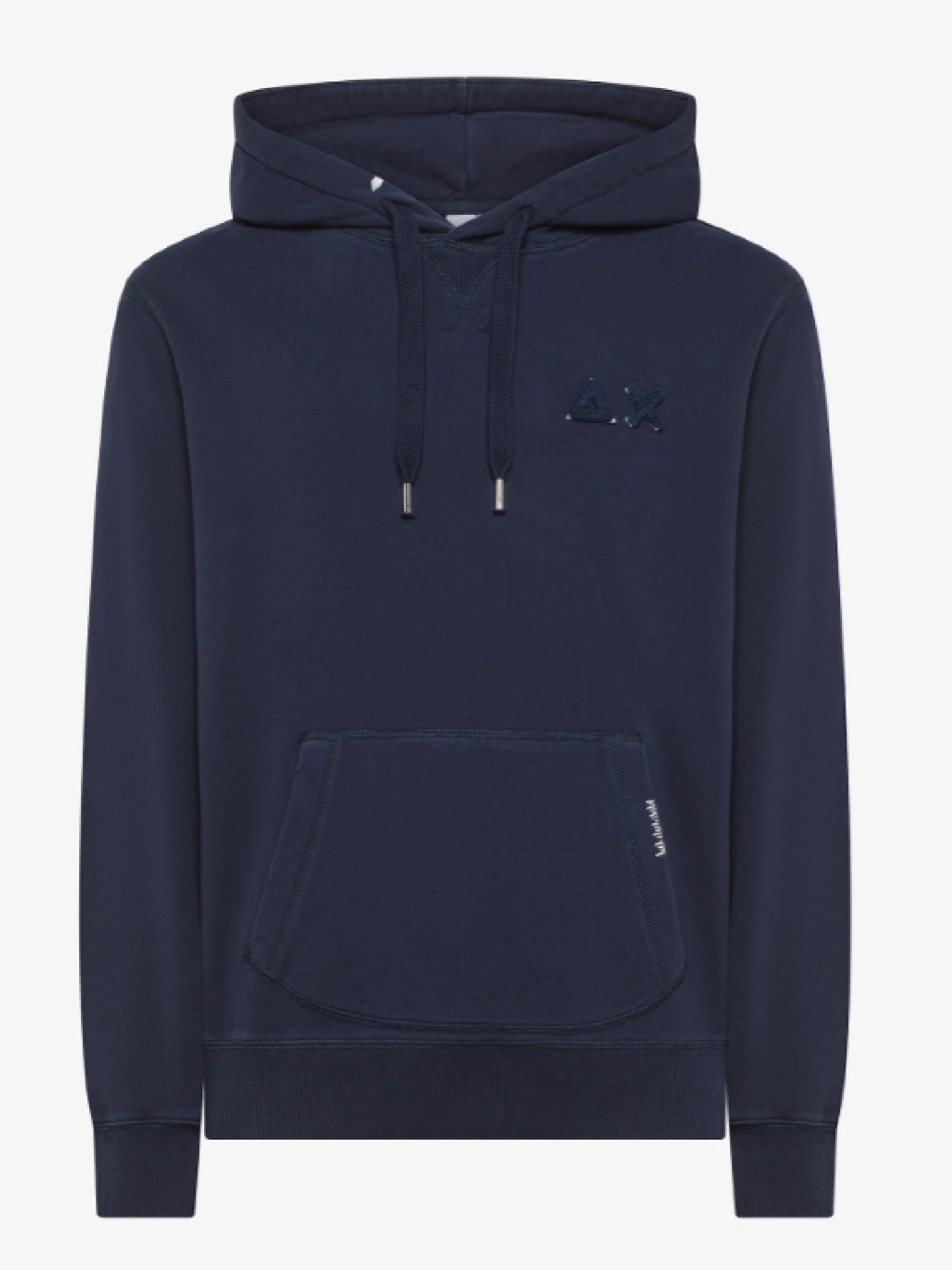 Felpa con cappuccio in cotone vintage. Realizzata in cotone morbido e resistente, offre uno stile casual con un tocco retrò. Il cappuccio regolabile e il design essenziale rendono questa felpa perfetta per un look rilassato e confortevole. Colore blu navy, ideale per abbinamenti versatili.